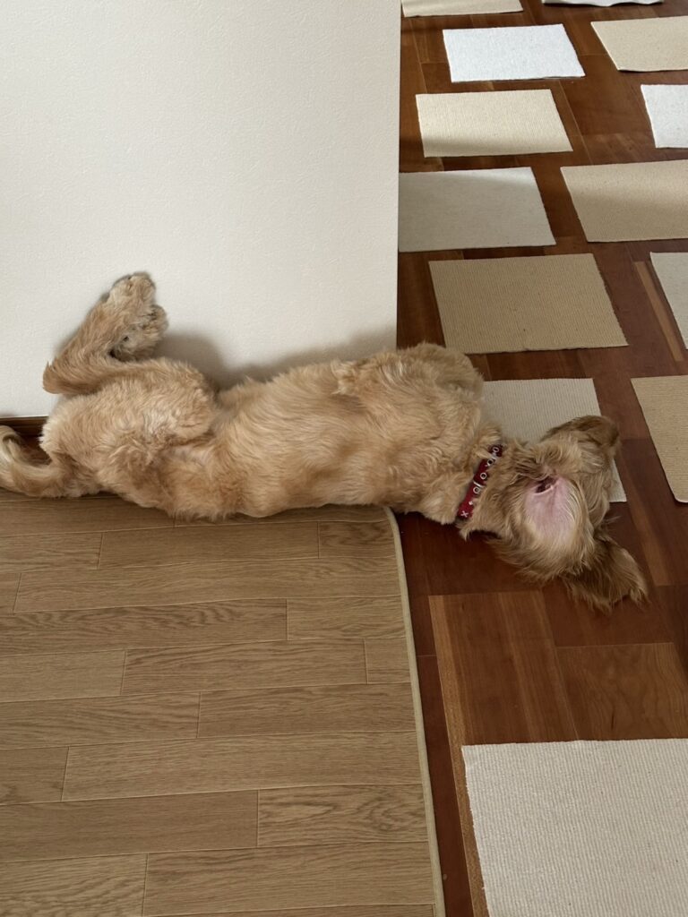 子犬の頃は少し遊ぶとすぐに電池が切れてトイレで寝るのがあいらは好きでした( ˊ̱˂˃ˋ̱ )
